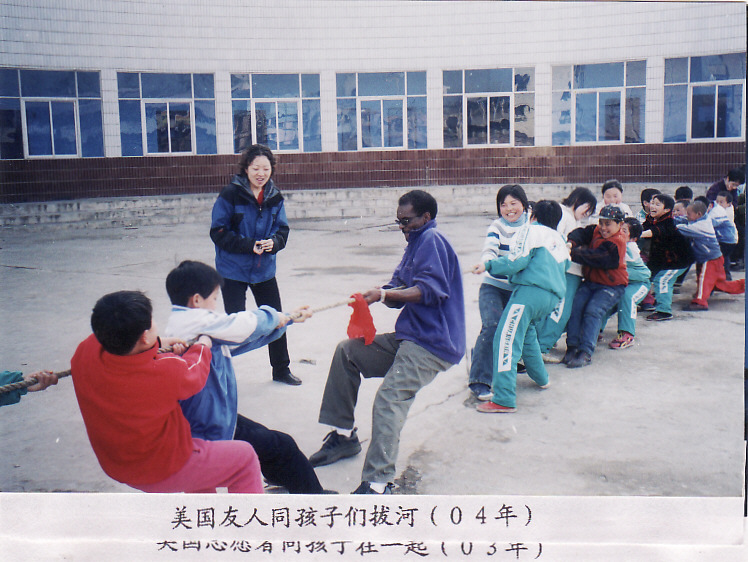 美国友人和孩子们拔河